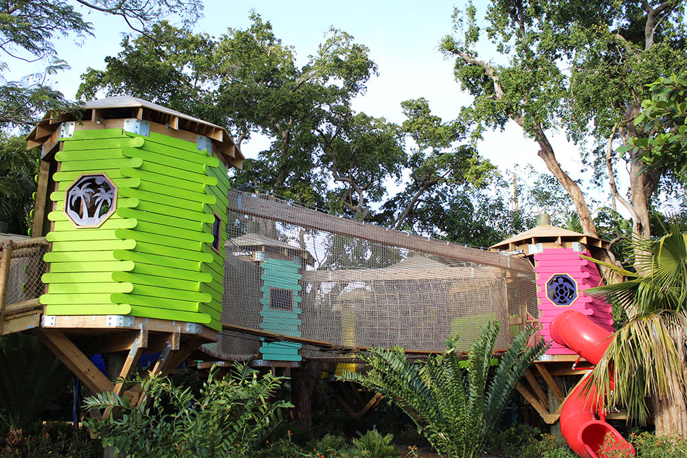 From a spiderweb climb, climbing ropes, a balance beam, slide to wooden bridges, the new playground at Jungle Island provides hours of fun adventures for kiddos and parents.